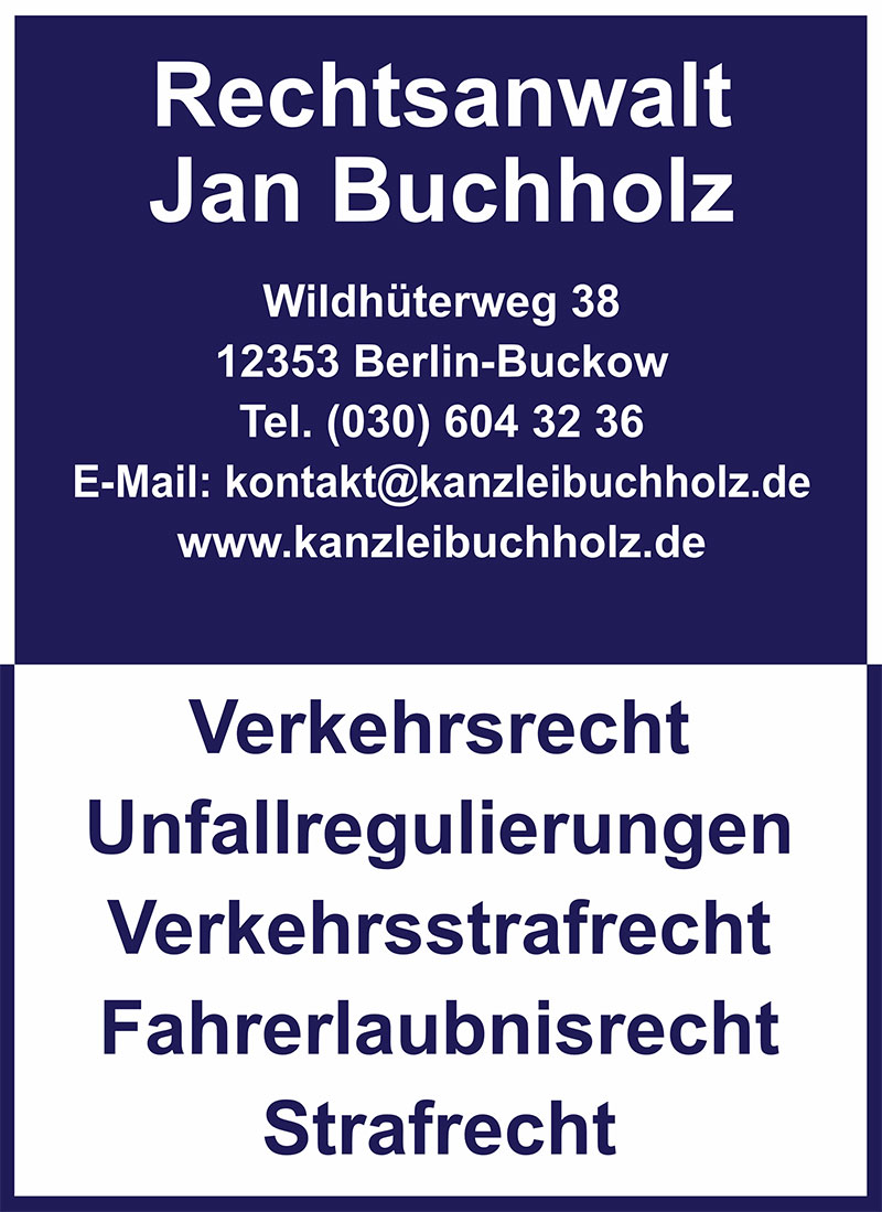 | E-Mail: | kontakt@kanzleibuchholz.de |
